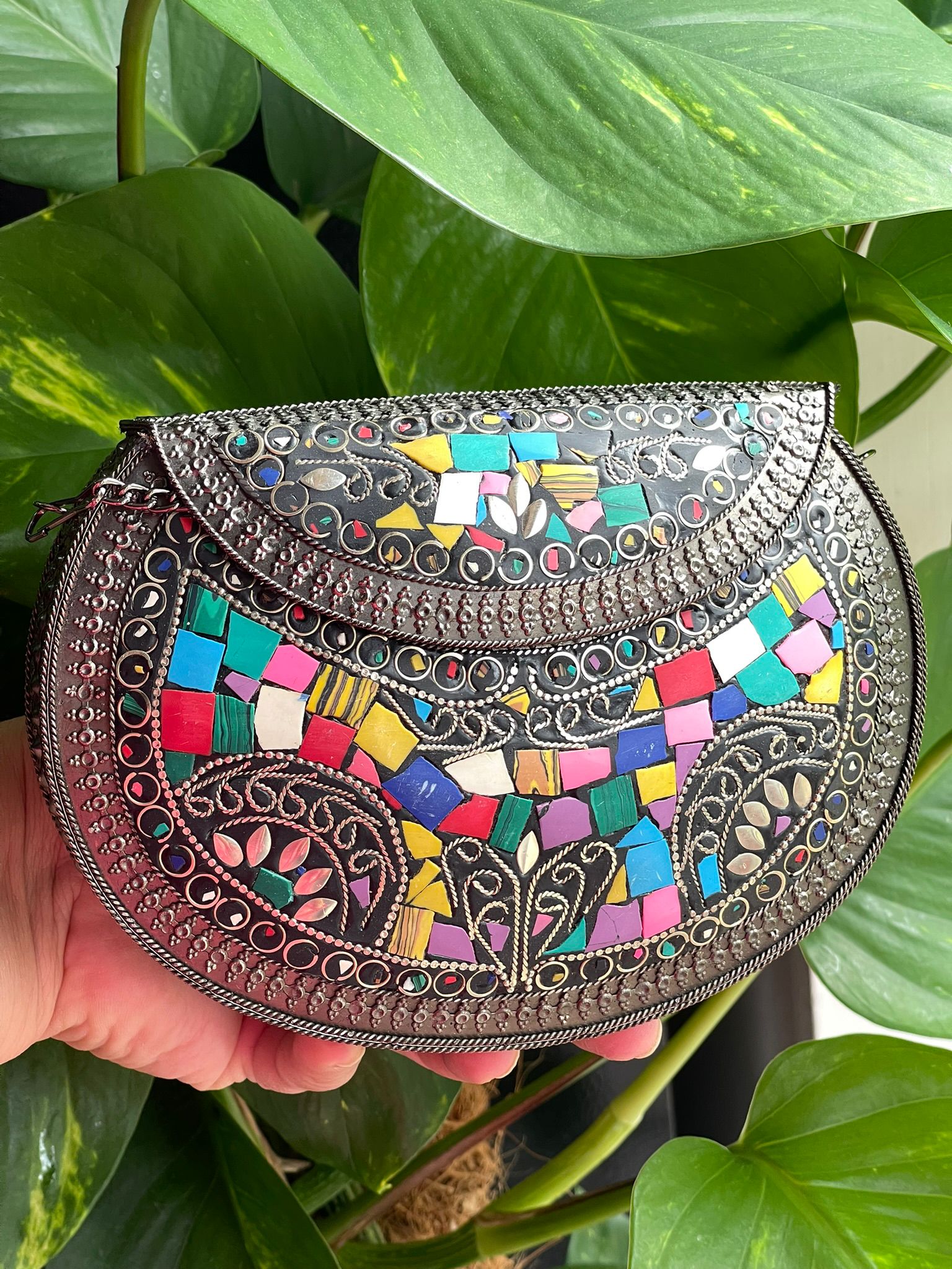 Pair with traditional wear or minimalist ensembles to let the clutch’s intricate metalwork shine.